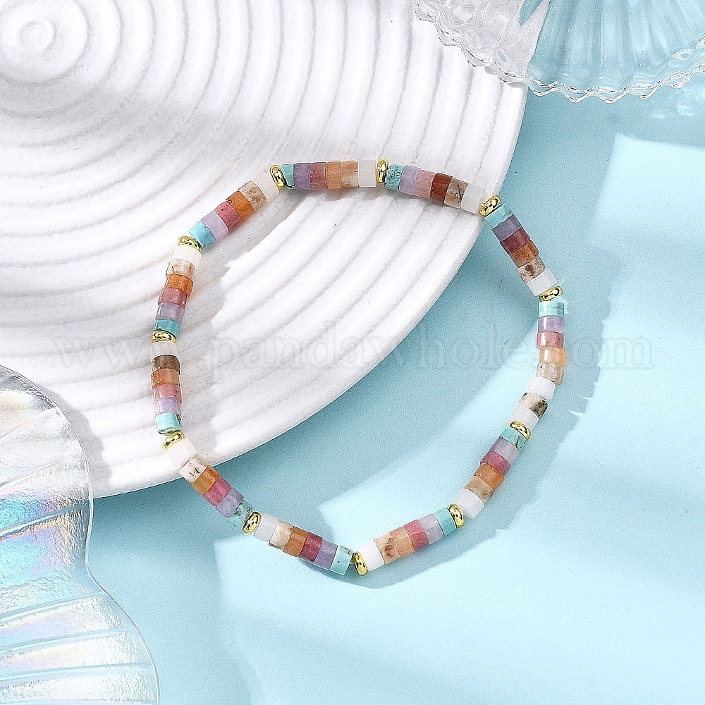 Браслеты из натуральных смешанных драгоценных камней с бусинами для женщин, плоско-круглые