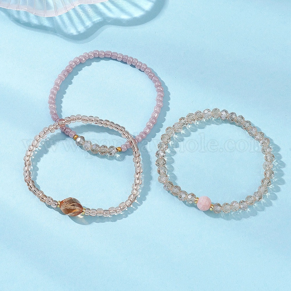 3шт 3 стили стеклянные бусины эластичные браслеты для женщин, круглые