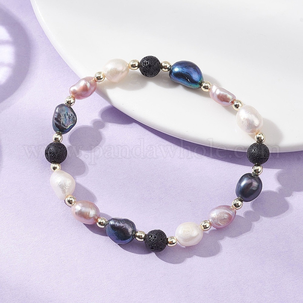 Браслеты из натуральных бусин из пресноводного культивированного жемчуга и лавового камня для женщин, картофель, с Гальваническим немагнитных синтетическими гематита бисера
