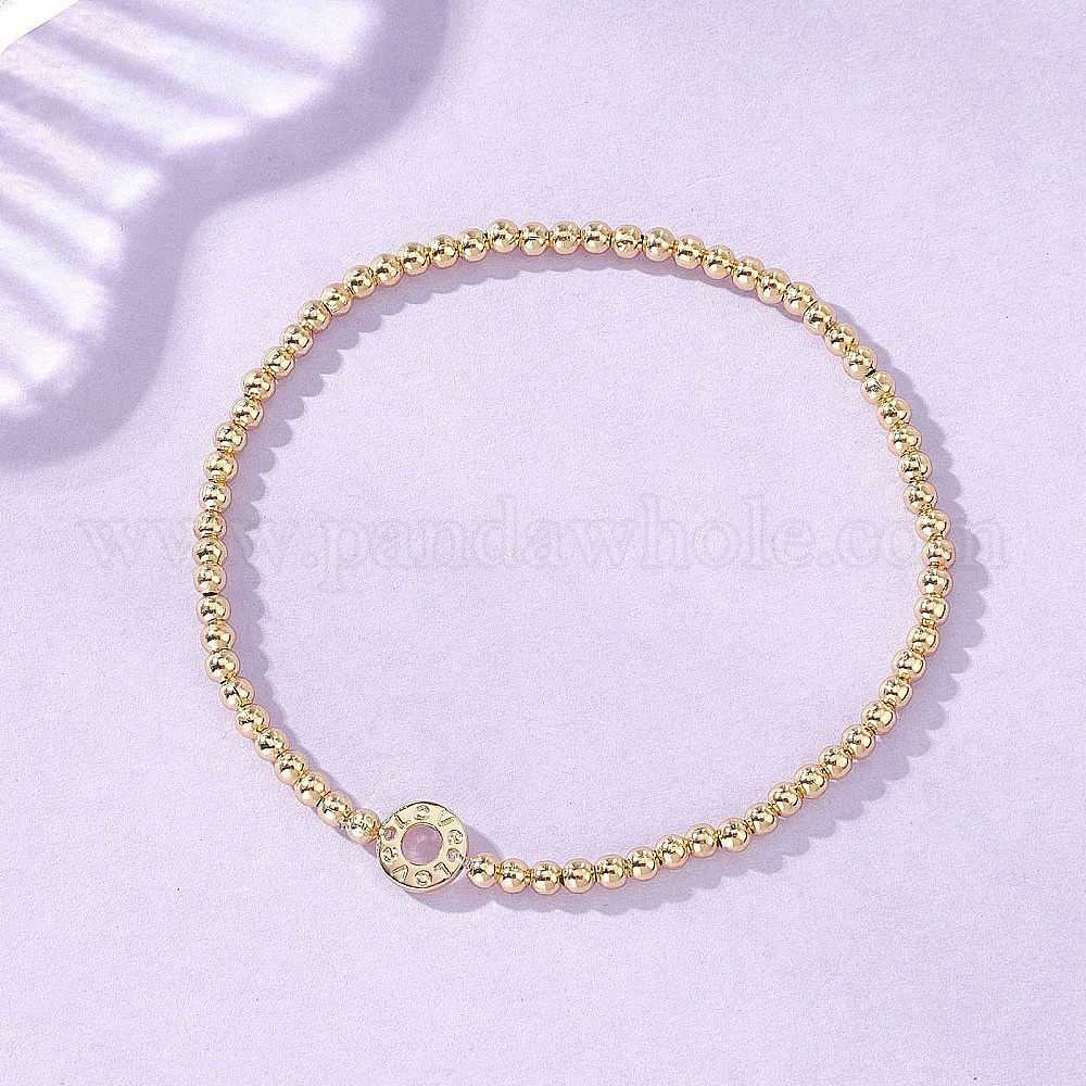 Латунные круглые бусины эластичные браслеты, браслеты для женщин, кольцо с слово любовь