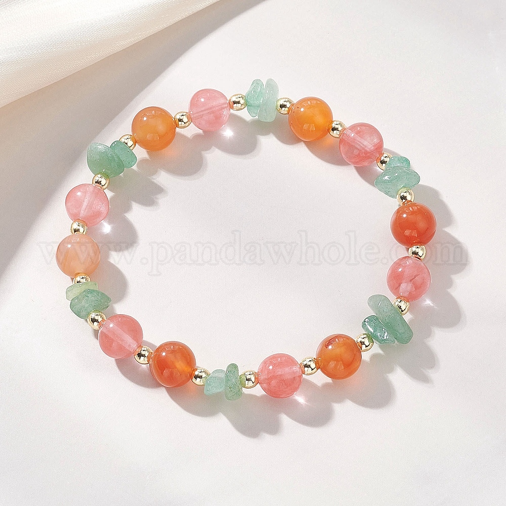 • Смешанные камни Женские браслеты из вишневого кварцевого стекла, натурального сердолика и зеленого авантюрина, круглые, с Гальваническим немагнитных синтетическими гематита бисера, внутренний диаметр: 2.09 дюйм (5.3 см)