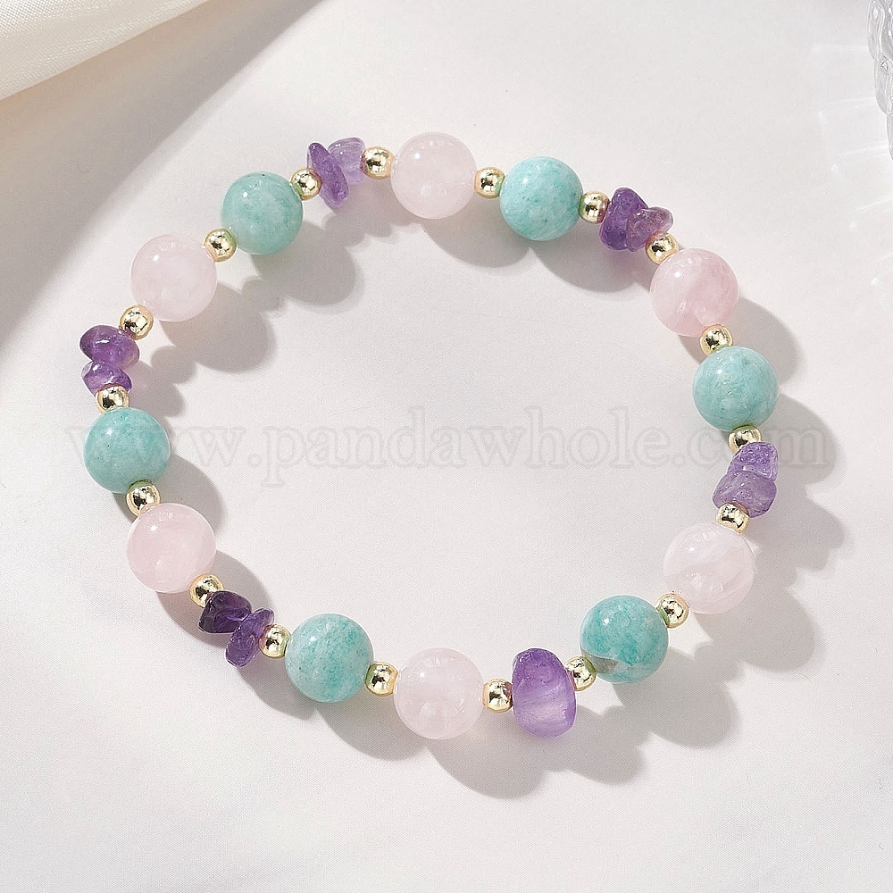 Женские браслеты из натурального мадагаскарского розового кварца, аметиста и амазонита, круглые, с Гальваническим немагнитных синтетическими гематита бисера