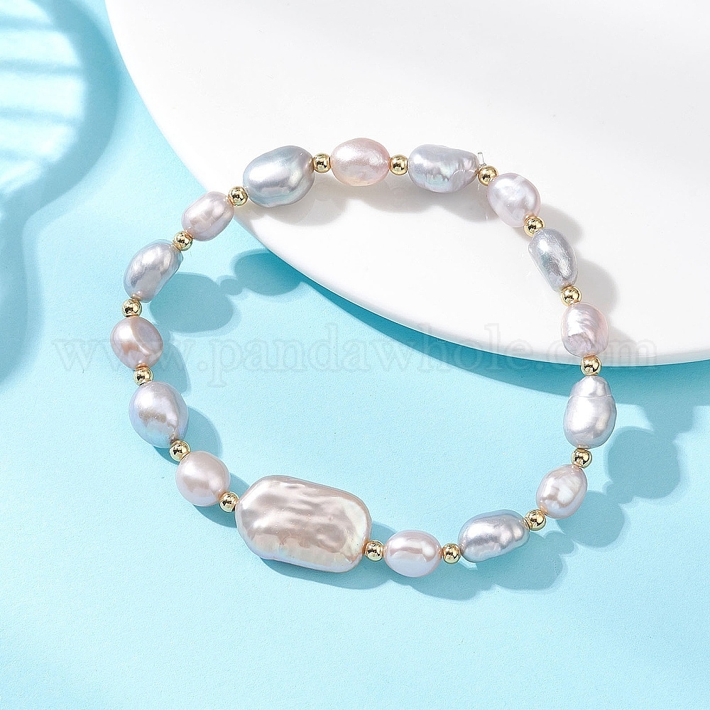 Женский эластичный браслет из натурального культивированного пресноводного жемчуга и латунных бусин, разнообразные, реальный 18 k позолоченный