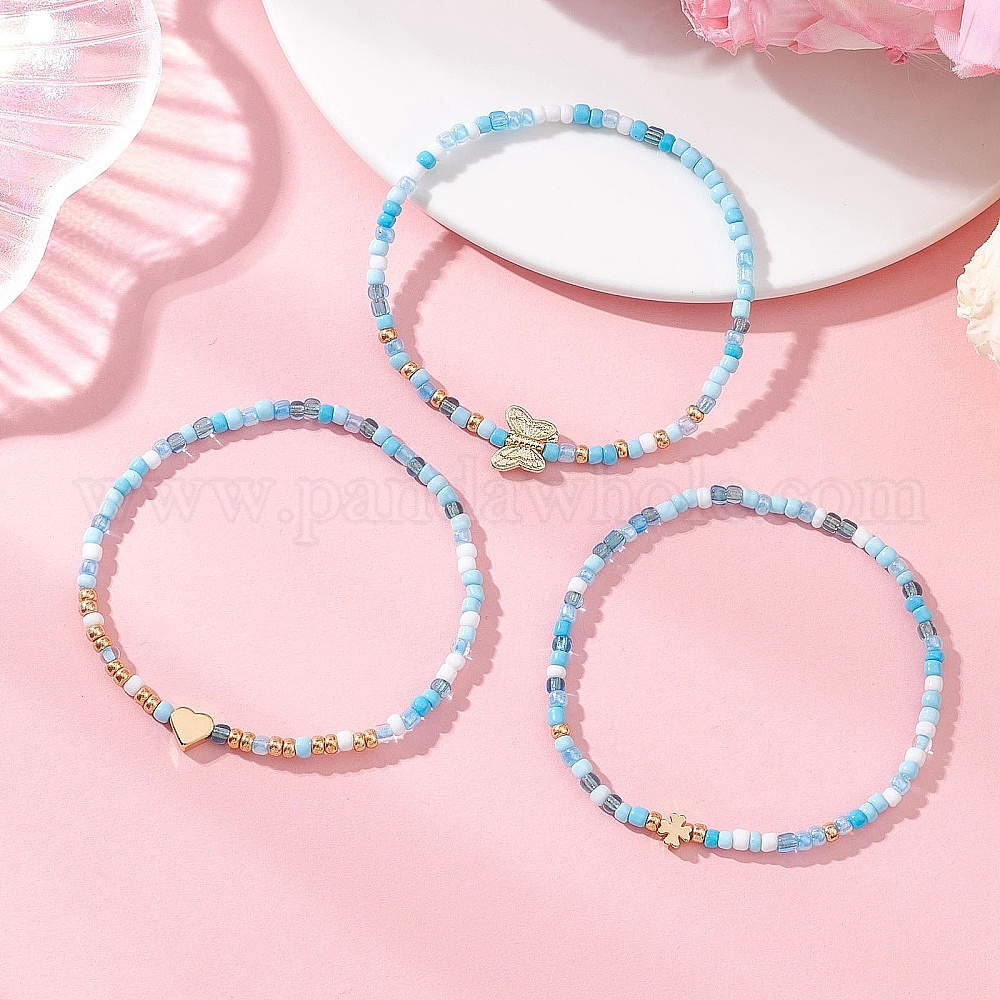 3шт. стеклянные бусины эластичные браслеты для женщин, круглые, с латунным