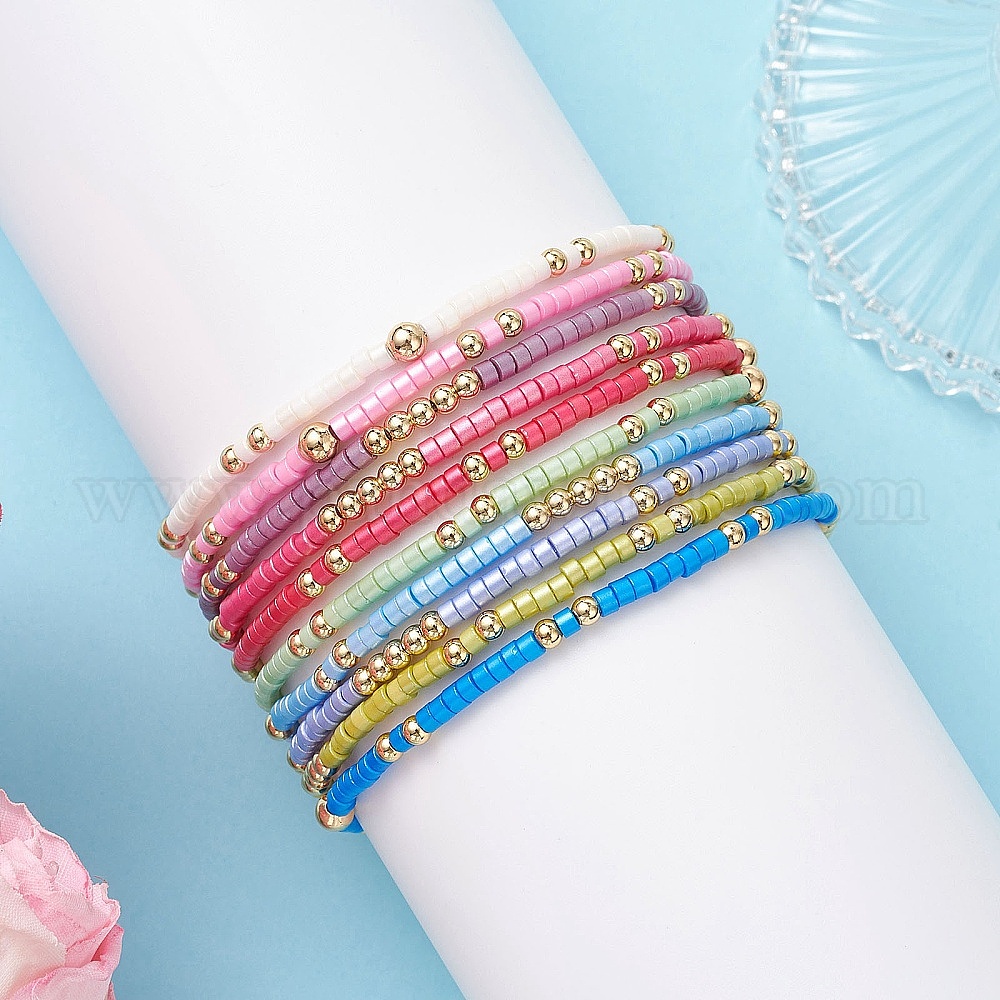 10 Набор эластичных браслетов из стеклянного бисера для женщин, браслеты из латунных круглых бусин