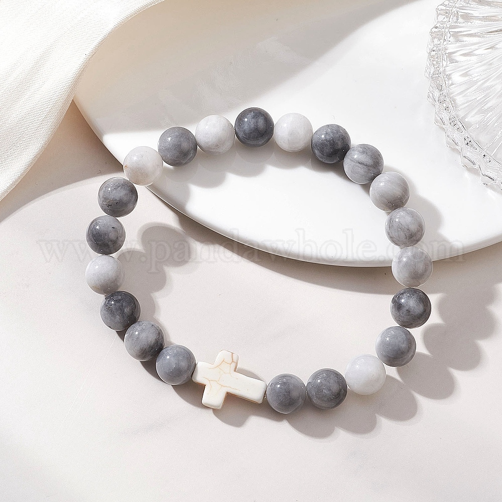 Эластичные браслеты из натуральных бусин «ястребиный глаз» и синтетической бирюзы для женщин и мужчин., круглый и крест