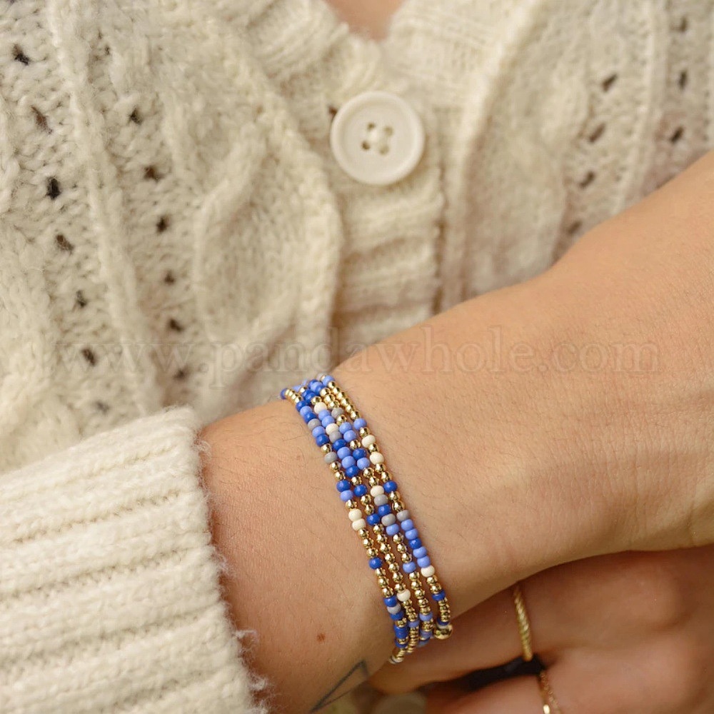 4 Браслеты из богемского стеклянного бисера и латунных бусин, эластичные, для женщин, рондель