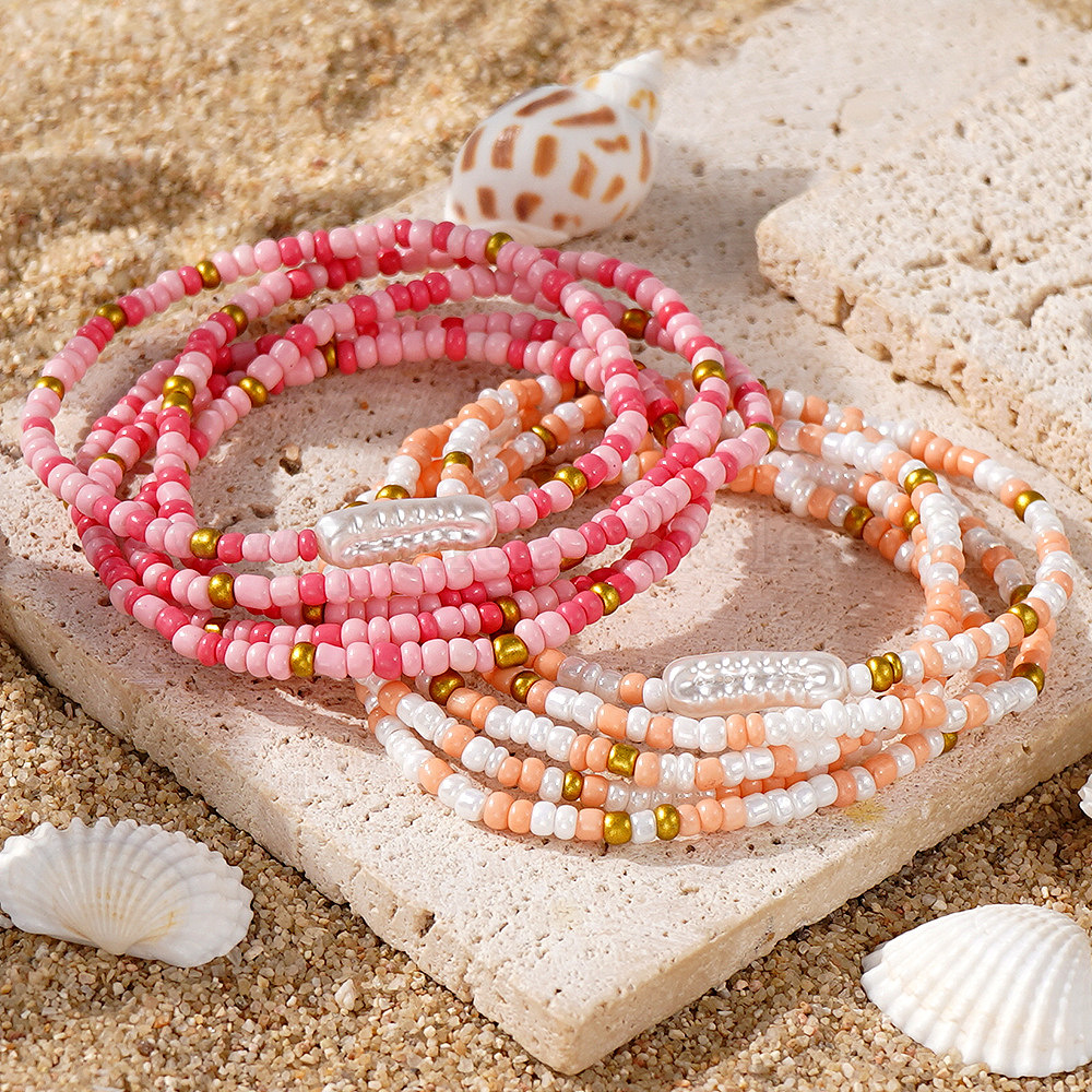 5 Наборы эластичных браслетов из ракушек и стеклянного бисера, летние украшения для женщин