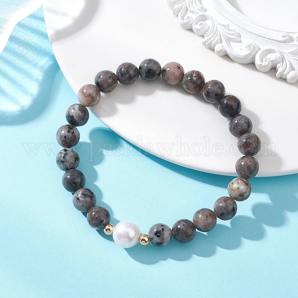 Эластичные браслеты для женщин с натуральными драгоценными камнями и культивированным пресноводным жемчугом, выполненные из круглых бусин.