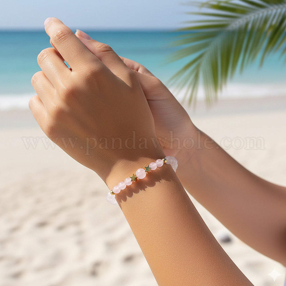 Браслеты из круглых бусин из натуральных драгоценных камней для женщин, звезда, с латунной бисера