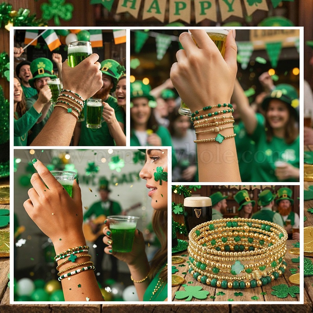 Латунные эластичные браслеты с бусинами ко Дню Святого Патрика для женщин