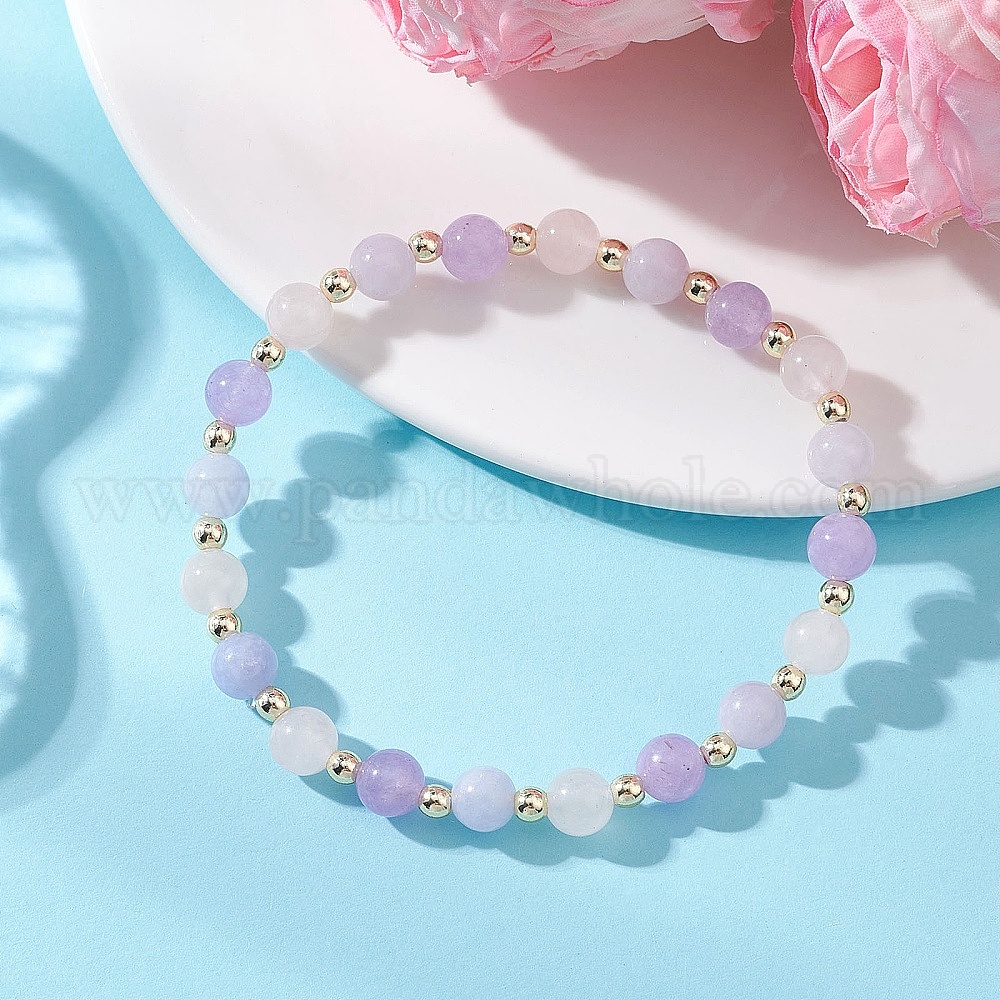 Женские браслеты из натуральных бусин аквамарина, розового кварца и аметиста, круглые, с немагнитных синтетическими гематита бисера