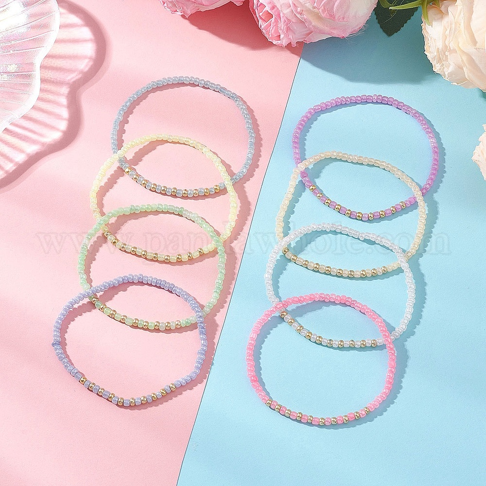 8шт. эластичные браслеты из стеклянного бисера для женщин, круглые