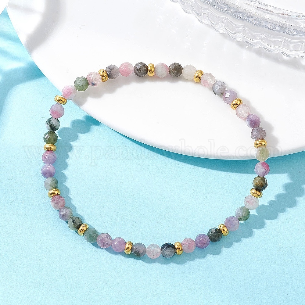Натуральные разноцветные турмалиновые браслеты на резинке для женщин, круглые, с латунной бисера, золотые