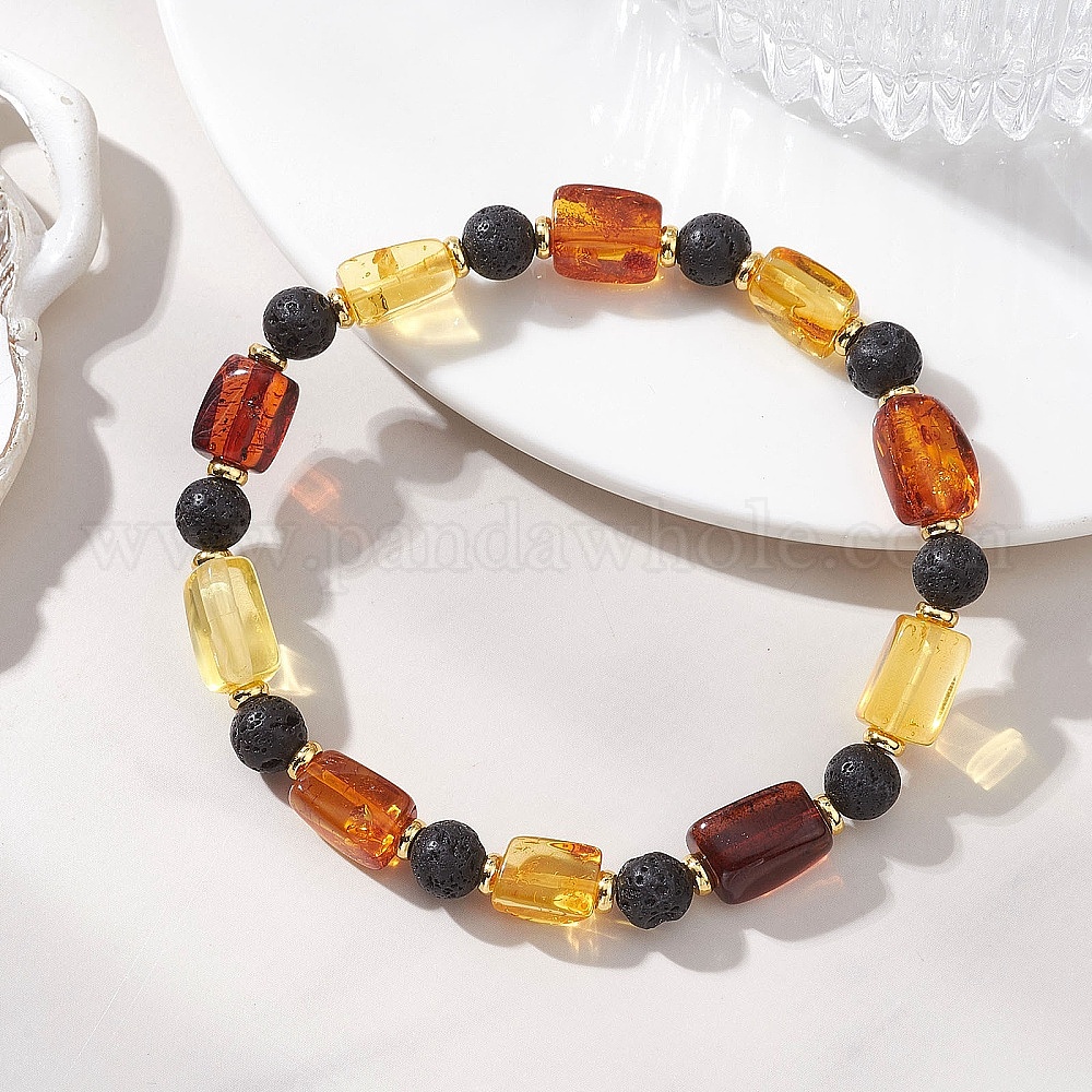 • Янтарный Натуральные янтарные и лавовые бусины, эластичные браслеты для женщин и мужчин., круглый и колонки, с золотыми латунными бисера, внутренний диаметр: 2.01 дюйм (5.1 см)