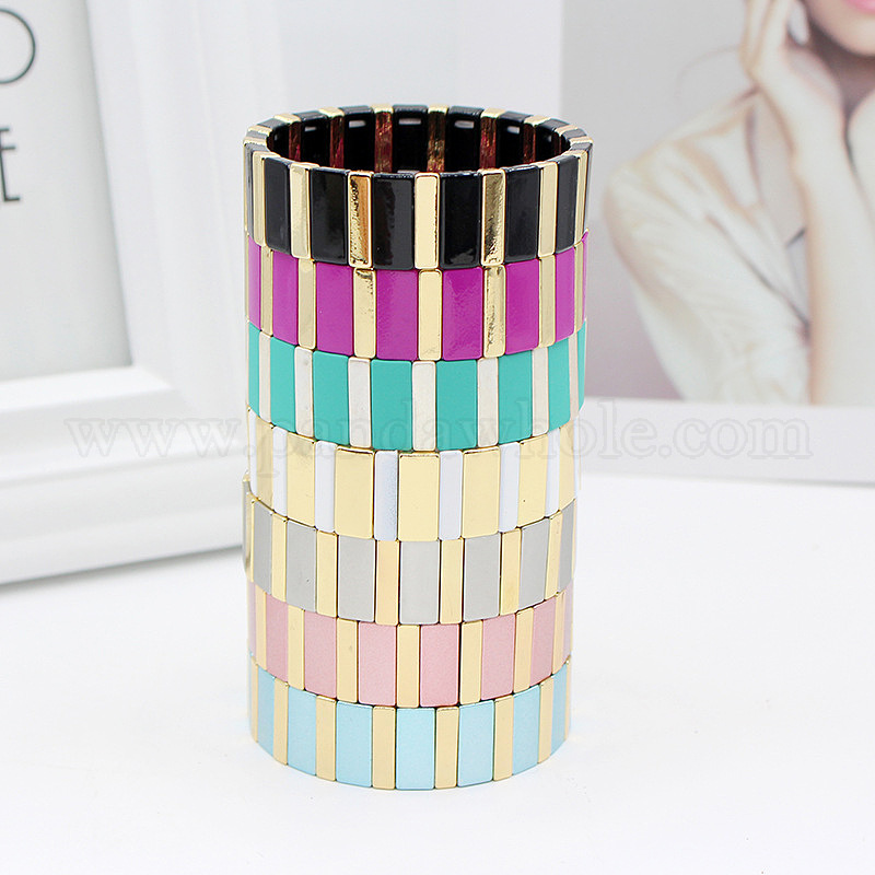 Браслеты из прямоугольных бусин из сплава, окрашенные методом запекания, эластичные., широкие браслеты для женщин