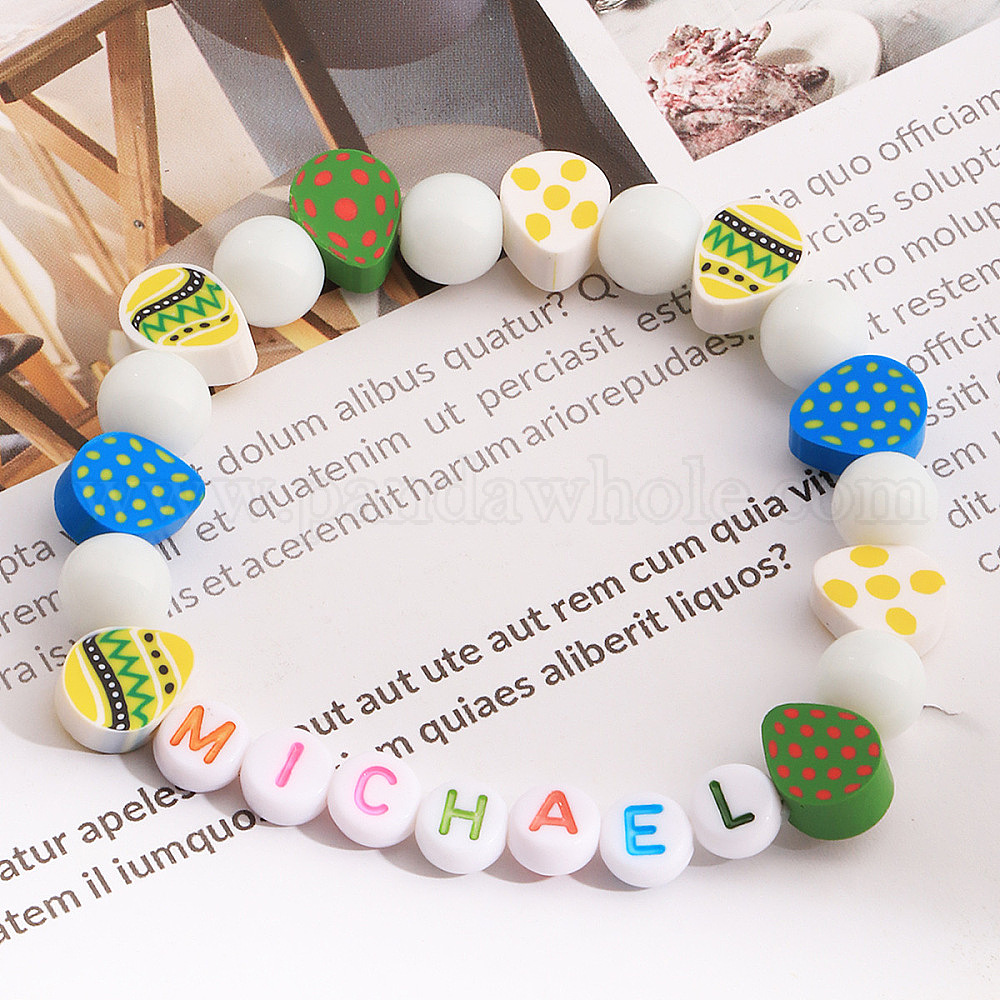 Браслеты в богемном стиле на пасхальную тематику из полимерной глины, стекла и смолы, эластичные, для женщин и мужчин., яйцо и слово Майкл