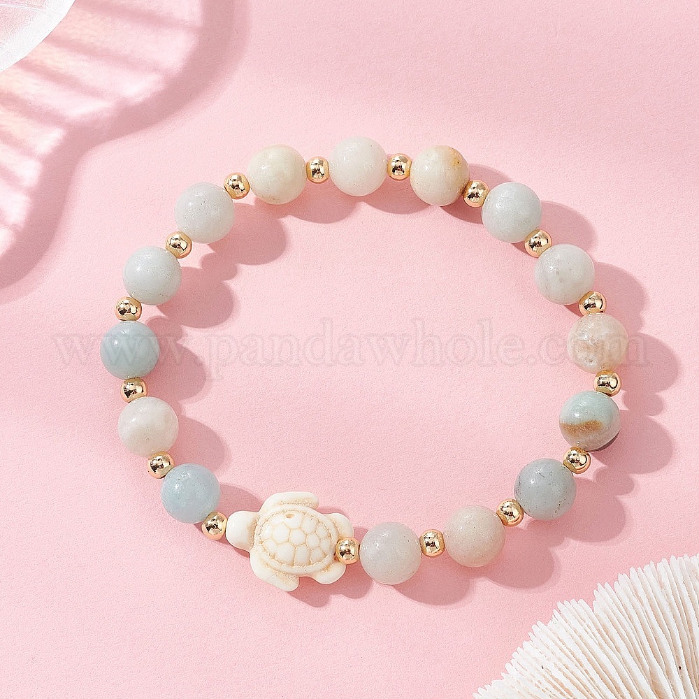 Эластичные браслеты из натурального цветочного амазонита и синтетической бирюзы, черепаха