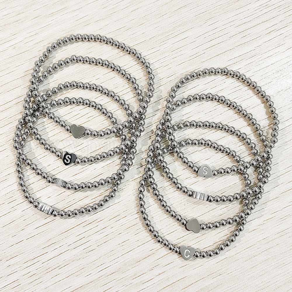 304 эластичные браслеты из нержавеющей стали для женщин, сердце с письмом, цвет нержавеющей стали