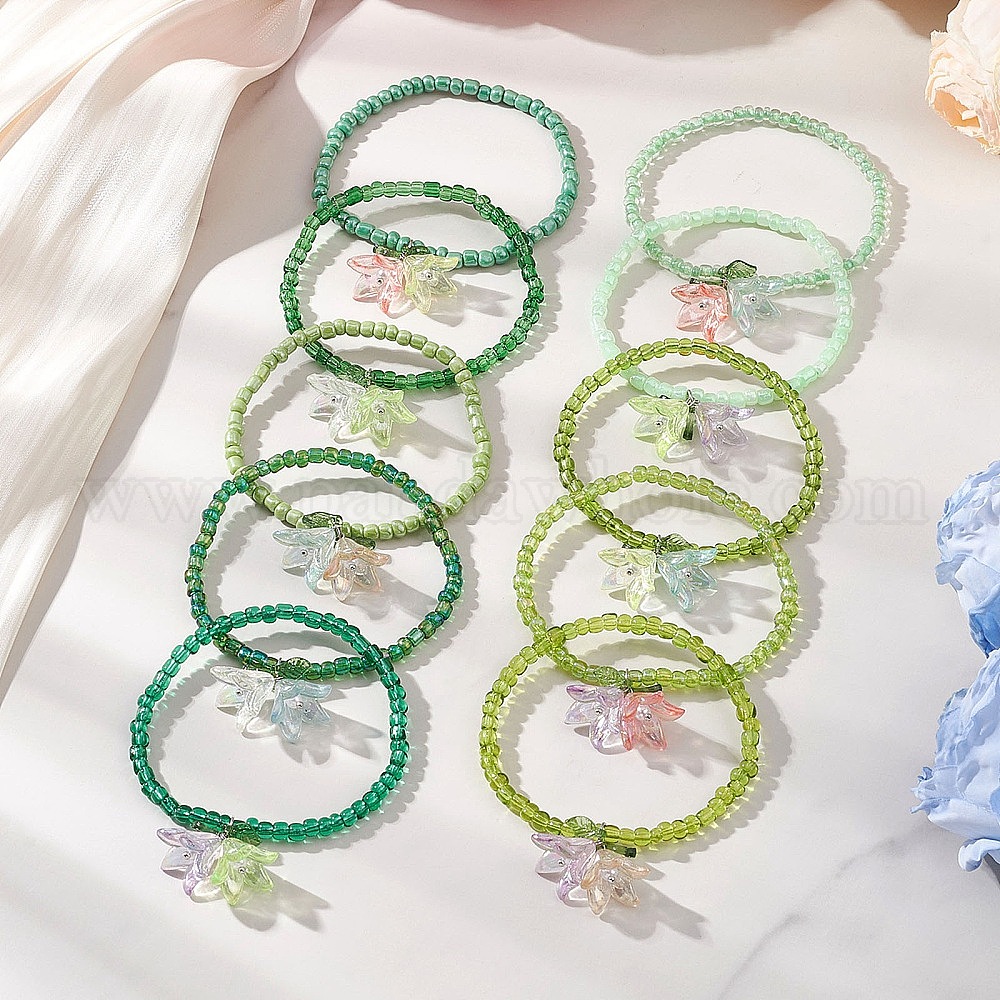 10шт. акриловых браслетов с подвесками, стеклянные бусины эластичные браслеты для женщин, цветок
