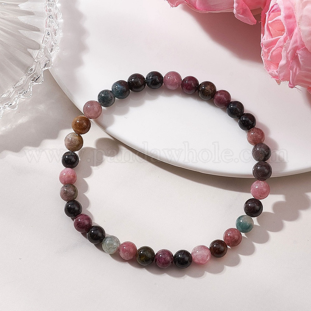 • Турмалин Круглые натуральные разноцветные браслеты из турмалина для женщин и мужчин., бусины : 6 мм, внутренний диаметр: 2.15 дюйм (5.45 см)