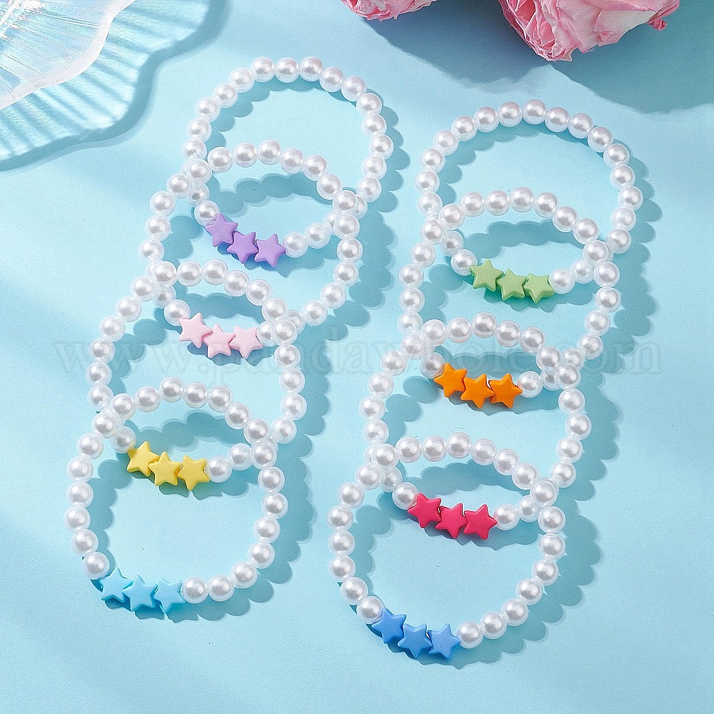 Имитированный жемчужина акриловые бусины растянуть браслеты, акриловые подвески для девочки, звезда