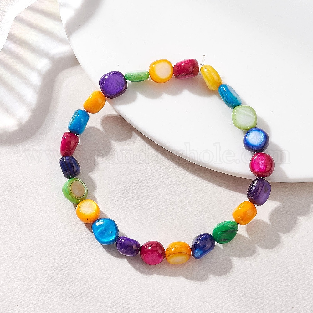 Браслеты из окрашенных натуральных ракушечных бусин на эластичной основе для женщин, аморфный