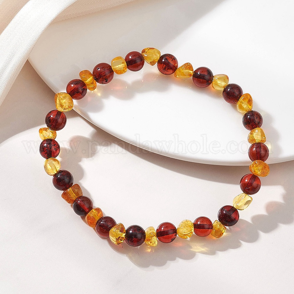 Натуральные янтарные браслеты из бусин, эластичные, для женщин и мужчин., круглые и самородки