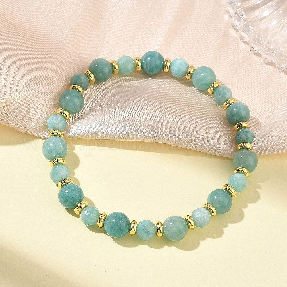 Натуральные амазонитовые и латунные эластичные браслеты для женщин и мужчин., круглые