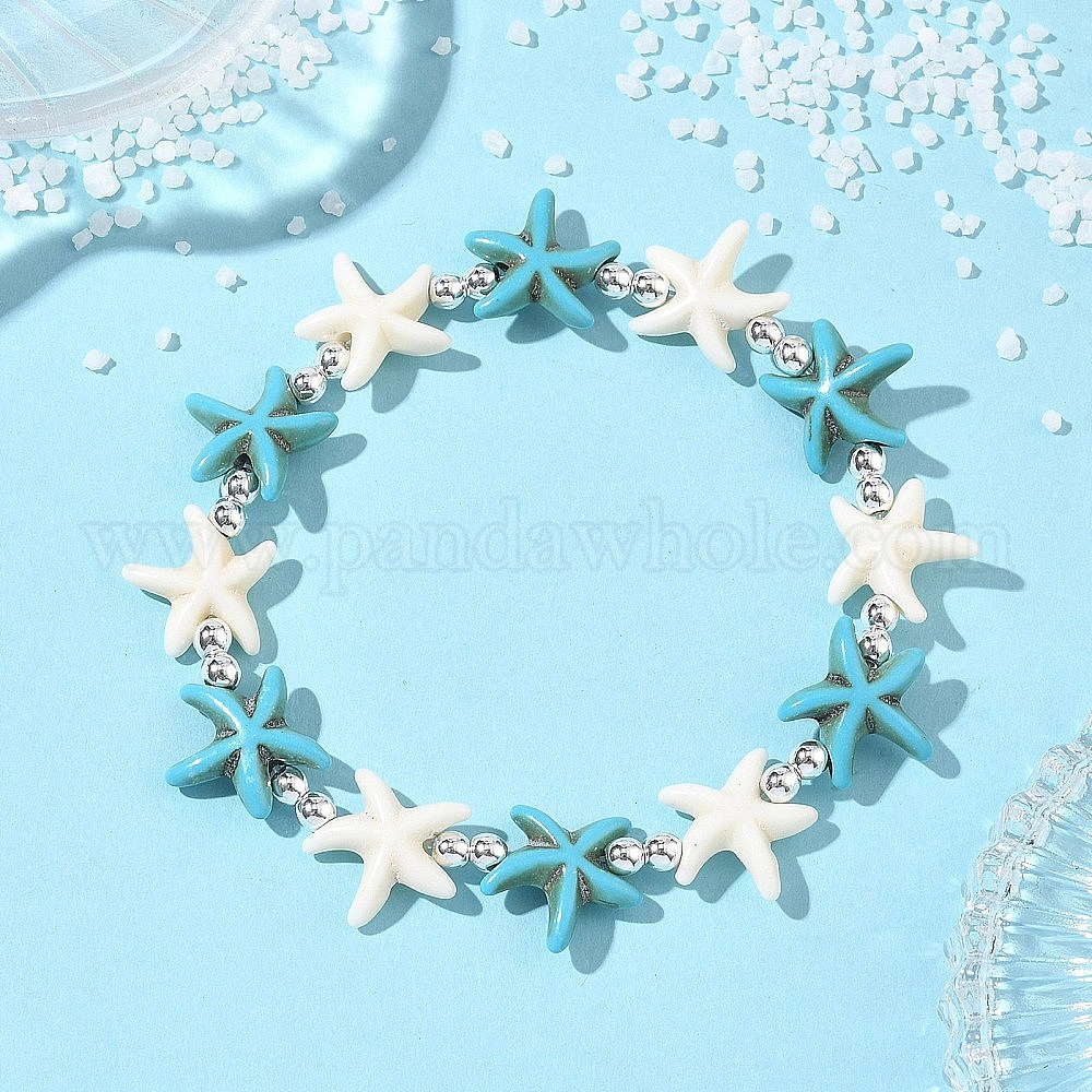 Браслеты из синтетической бирюзы и немагнитных гематитовых бусин, эластичные, для женщин и мужчин., морская звезда, разноцветные