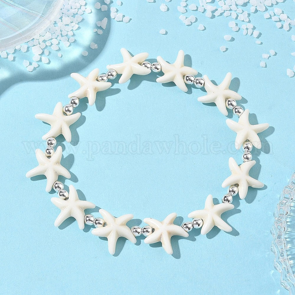 Браслеты из синтетической бирюзы и немагнитных гематитовых бусин, эластичные, для женщин и мужчин., морская звезда, белые