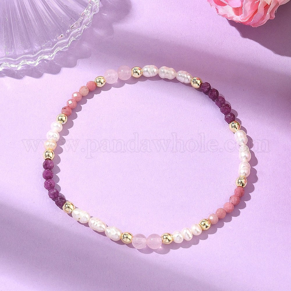 Эластичные браслеты для женщин из натурального родонита, розового кварца, рубина и культивированного пресноводного жемчуга., круглые, С немагнитным синтетическим гематитом