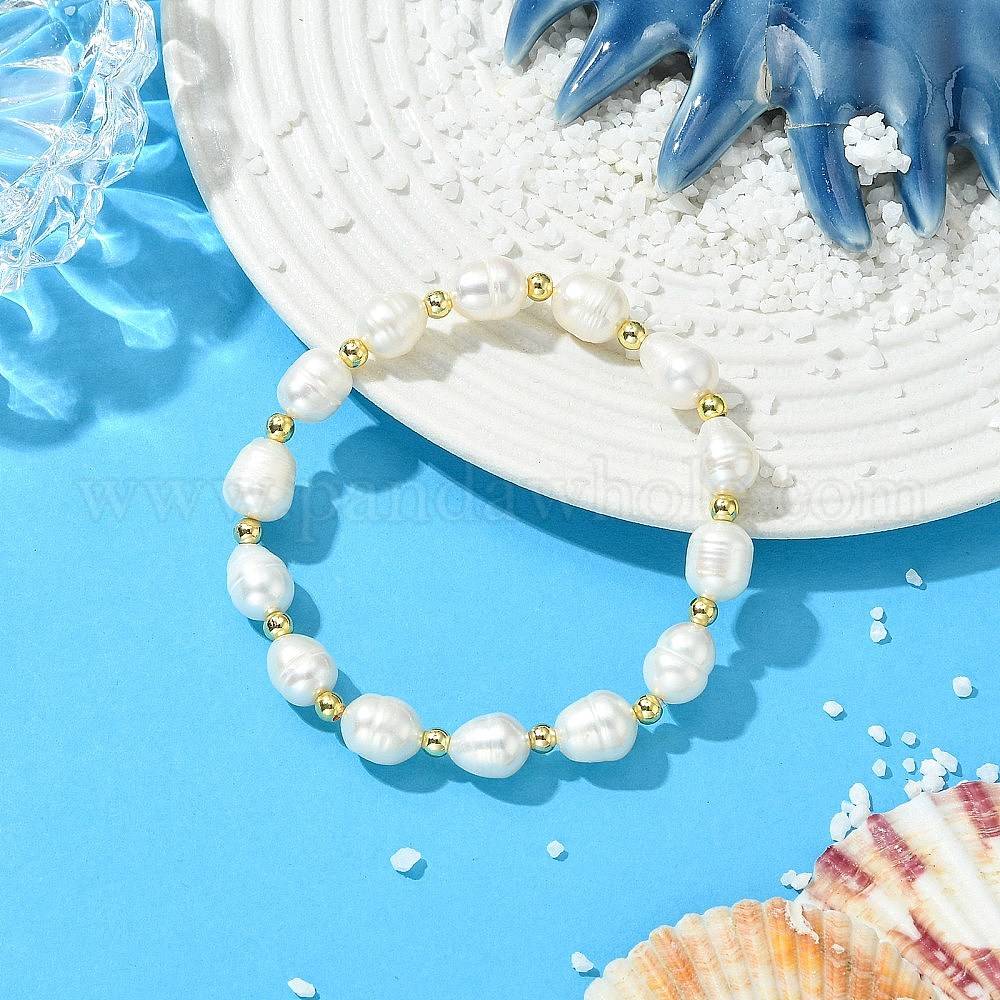 Эластичные браслеты из латуни и натурального культивированного пресноводного жемчуга для женщин., рис и круглый, золотые