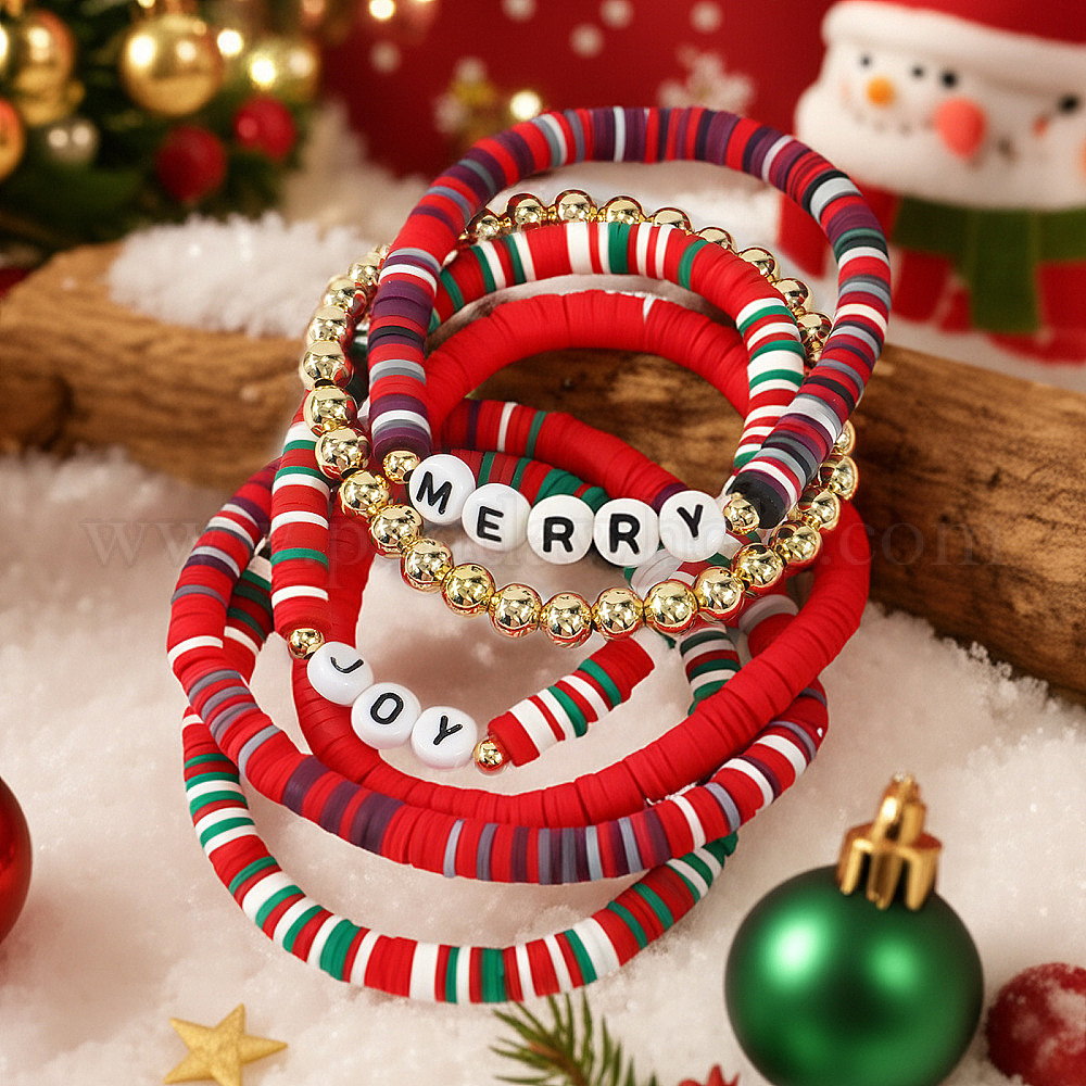 6шт. 6 стили: браслеты из полимерной глины с бусинами «хейши» и латунными круглыми бусинами, набор браслетов., Украшения из смолы и акрила в виде бусин «Веселье и радость» для женщин.
