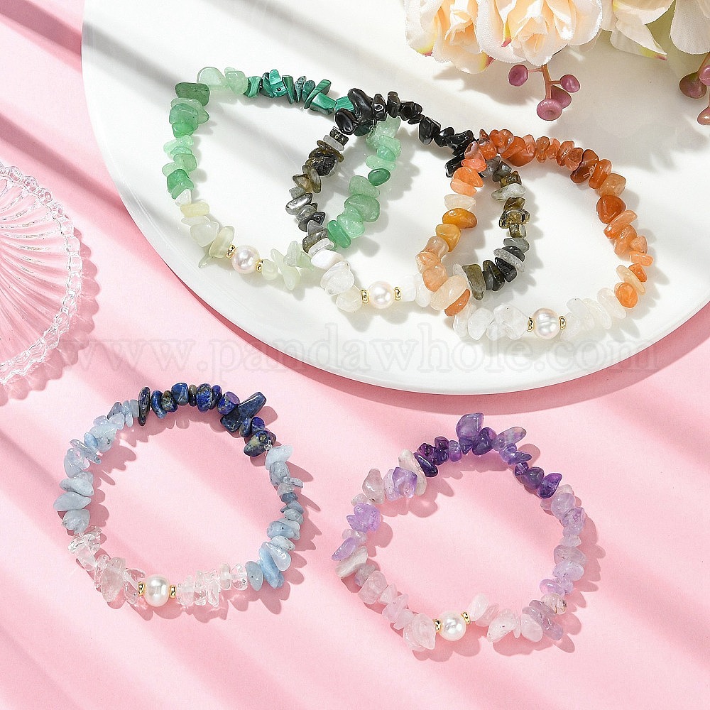 Эластичные браслеты для женщин, украшенные натуральными драгоценными камнями и культивированным пресноводным жемчугом., чип и круг