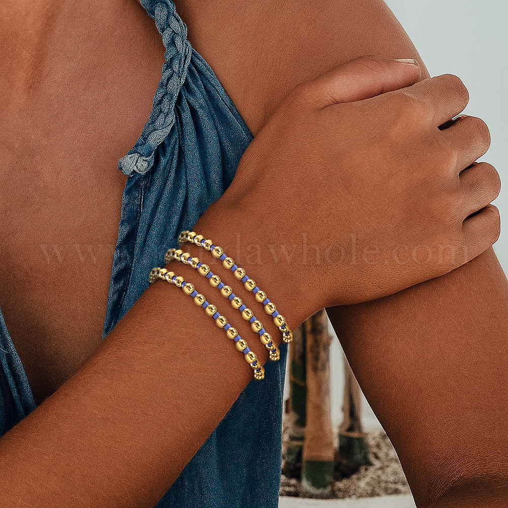3 Набор эластичных браслетов из CCB и стеклянного бисера для женщин, круглый и колонки