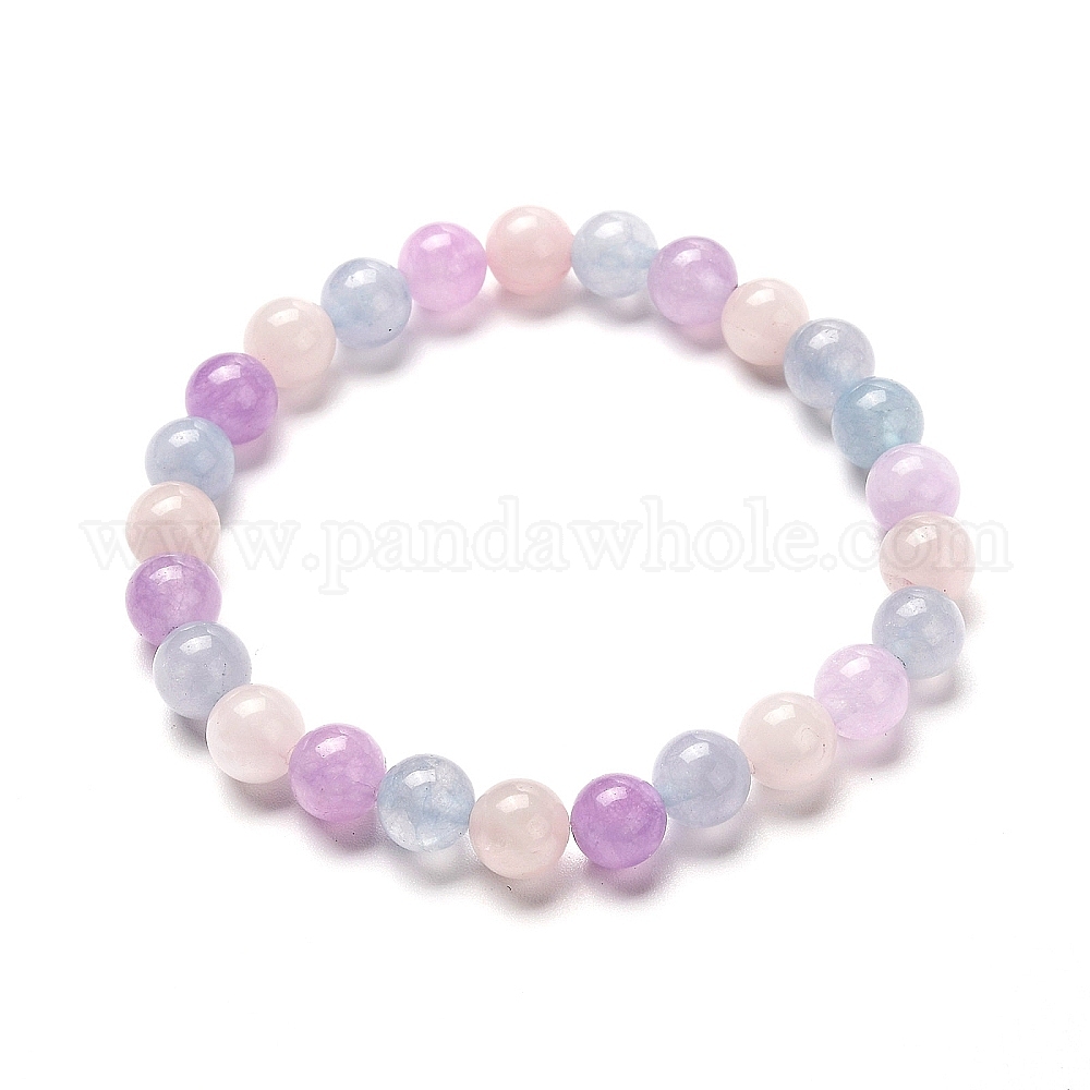Каменный стрейч-браслет для девушек и женщин, браслет из натурального аквамарина, розового кварца и аметиста