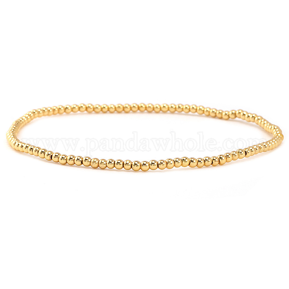• Золотой Латунные круглые бусины эластичные браслеты для женщин, золотые, 6.89 дюйм (17.5 см)