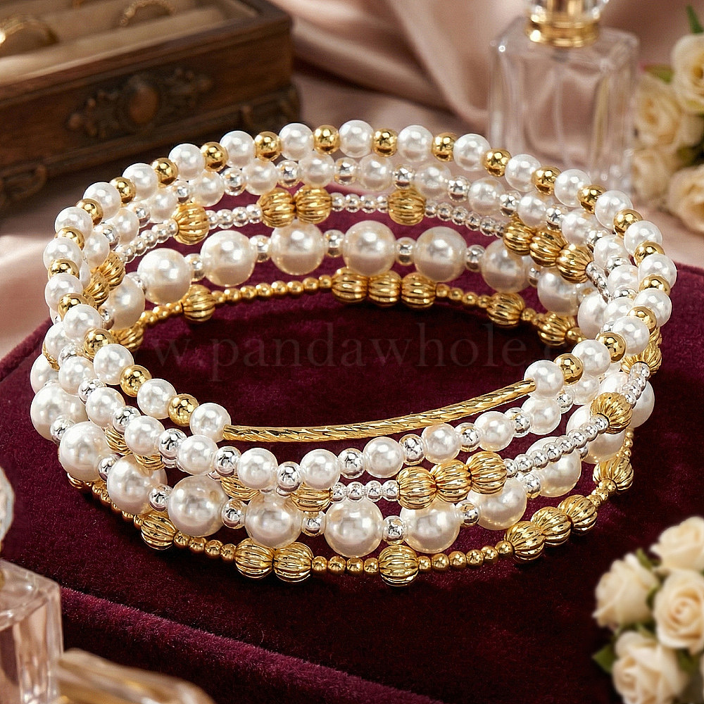 Браслеты из латуни с круглыми бусинами из искусственного жемчуга, эластичные., составные браслеты для женщин