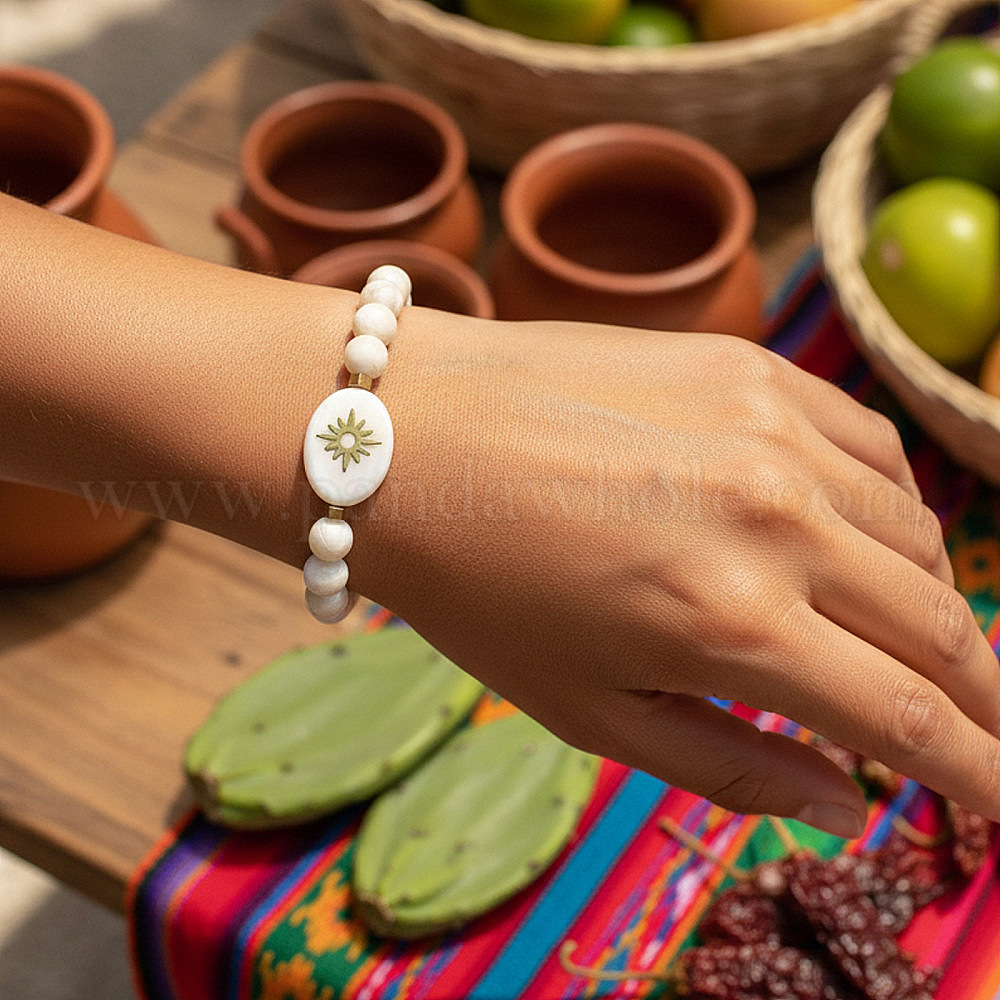 Круглые браслеты из натуральных ракушек и синтетических немагнитных бусин из гематита, изготовленные на резинке., Овальное украшение с солнечными лучами для женщин