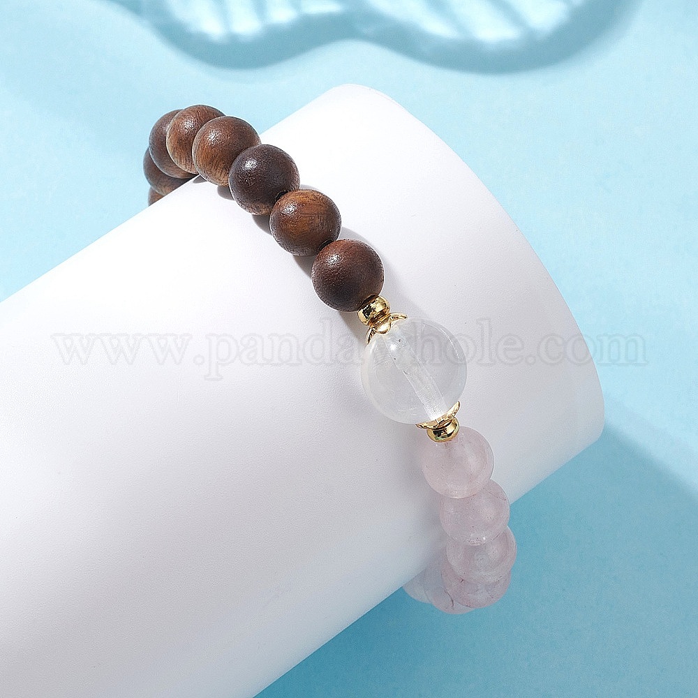 Натуральные браслеты из розового кварца, кварцевого кристалла и сандалового дерева с круглыми бусинами, эластичные, для женщин и девочек.