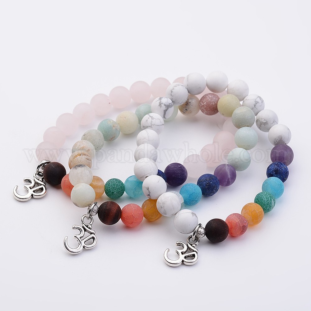 Природных драгоценных камней браслеты простирания, литые Ом подвески, античное серебро