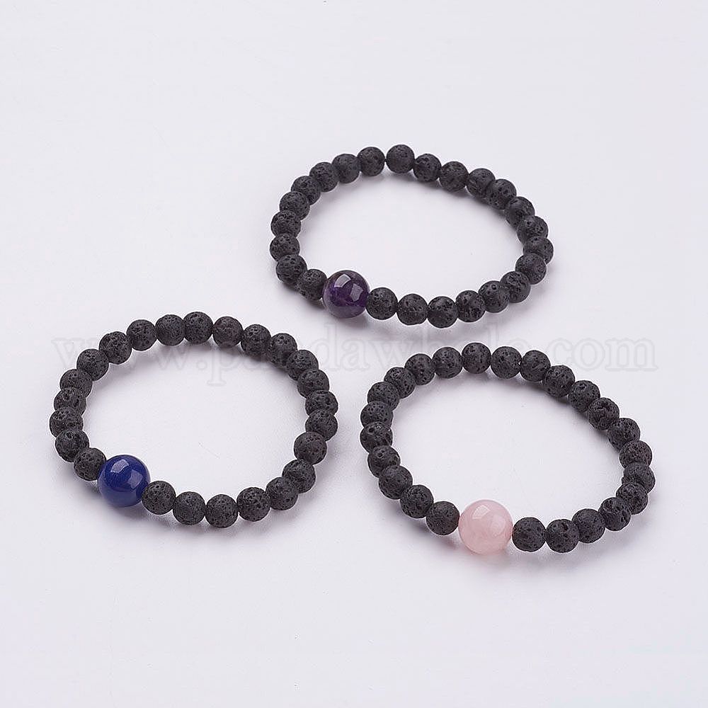 Браслеты-стрейч из натурального камня лавы, с природными драгоценный камень бисером