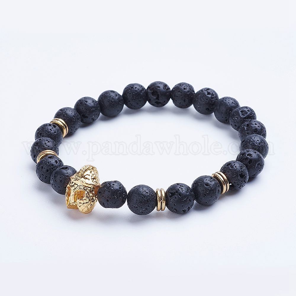 • Лавовый камень Браслеты-стрейч из натурального камня лавы, с бисером сплава Spacer, 1-3/4 дюйм (45 мм)