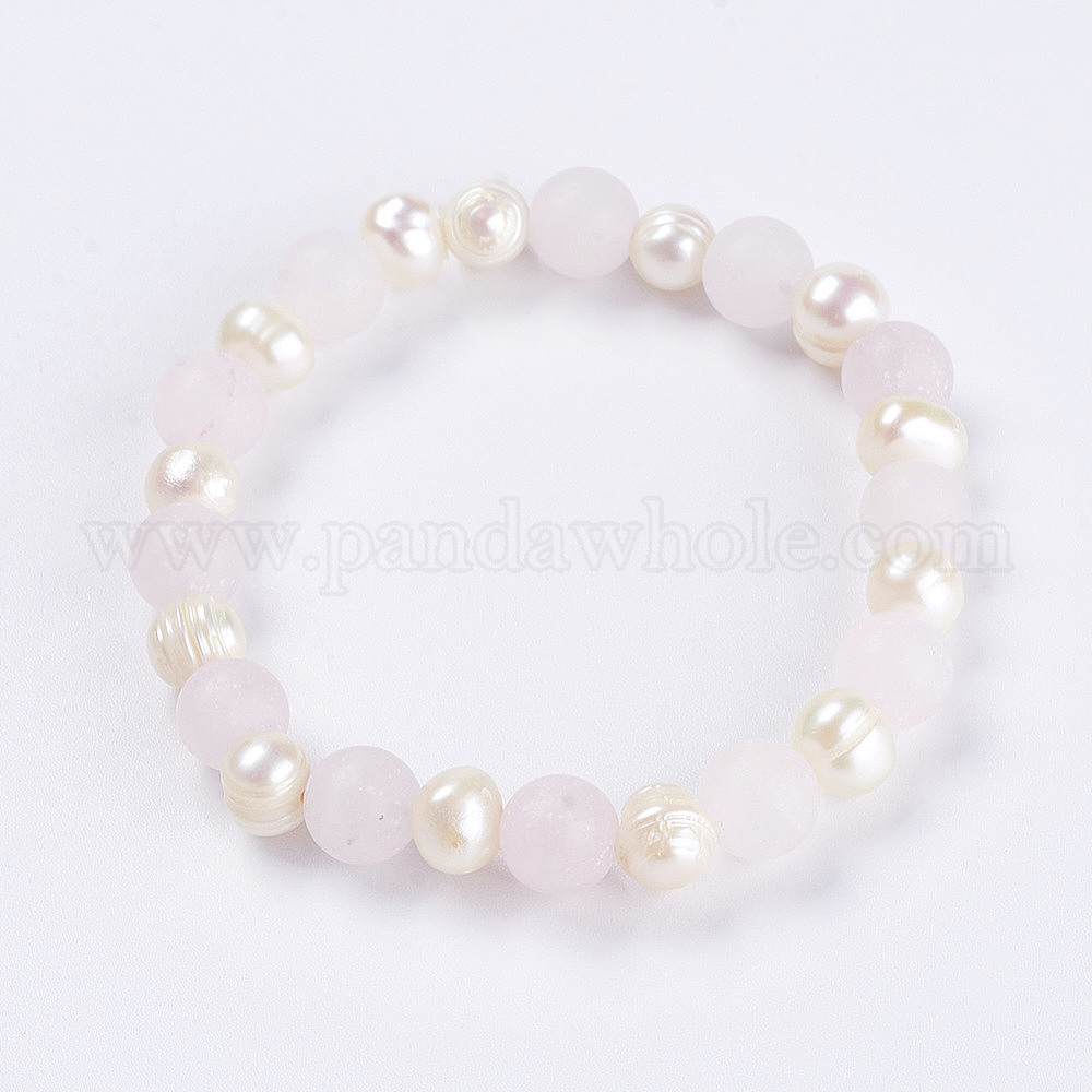 • Розовый Кварц Естественно розовый кварц стрейч браслеты, с жемчуг, 2-1/8 дюйм (53 мм), 1strand / коробка