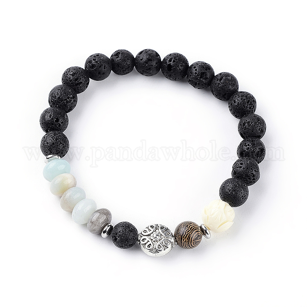 Драгоценный камень бисером растянуть браслеты, с тибетском стиле сплава бисером, Деревянные бусины, синтетические коралловые бусины и латунные находки
