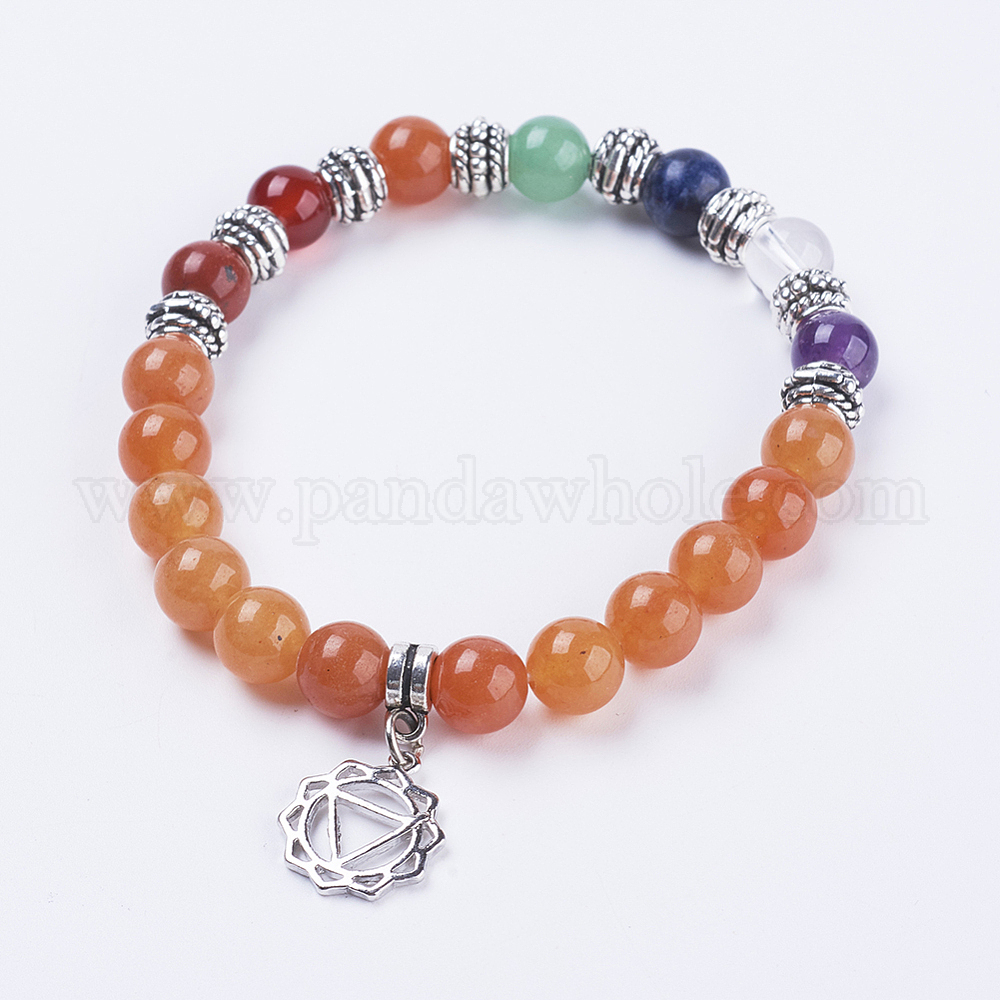 Натуральный красный авантюрин браслеты простирания, со смешанным камня, результаты сплава и латунные подвески, цветок