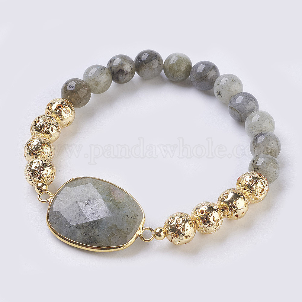 Гальванические браслеты из натуральной лавы и натуральных драгоценных камней, круглый и трапециевидный, золотые