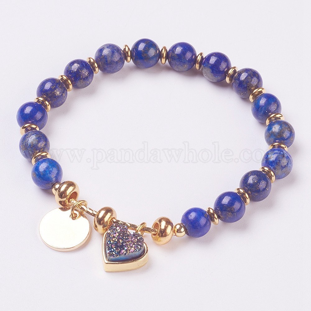 Природные драгоценный камень бисером растянуть браслеты, с гальваническим налетом естественной друзы и латуни, сердца и плоские круглые