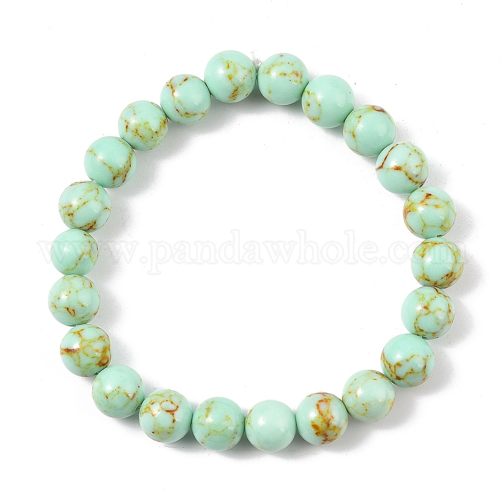 Синтетический бирюзовый бисером стрейч-браслет, круглые